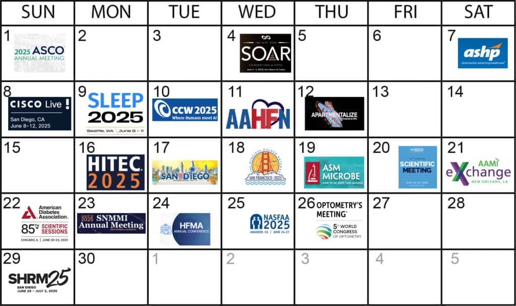 Do you plan to exhibit at any of the events below? If so, let us know! We’d love to help enhance your presence and differentiate you from the rest of the crowd!